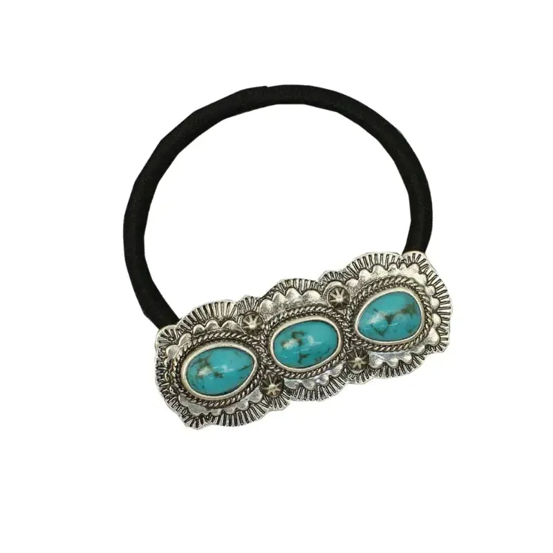 M & F WESTERN Triple Turquoise Stones Hair Tie