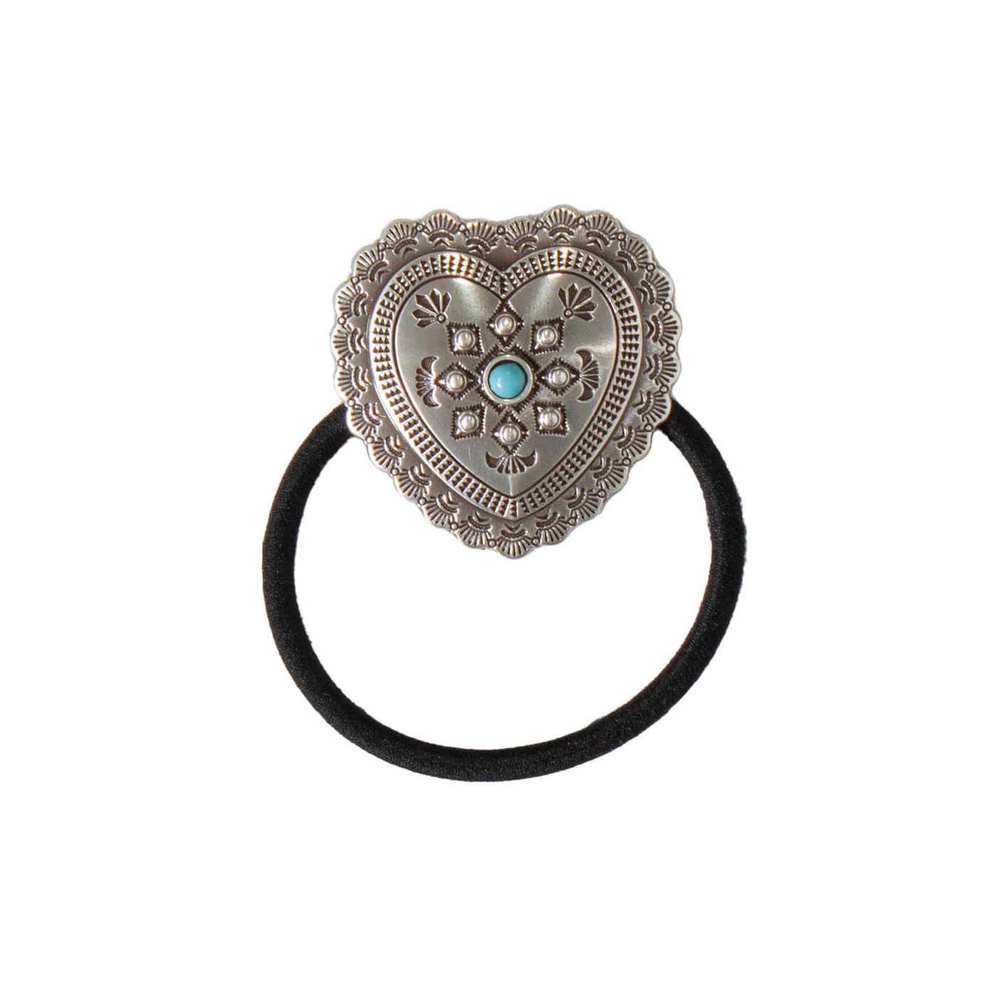 M & F WESTERN Vintage Heart Hair Tie With Turquoise Accent