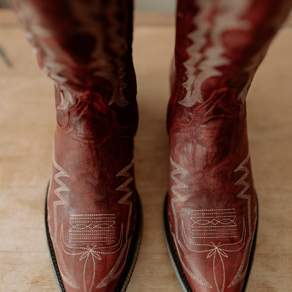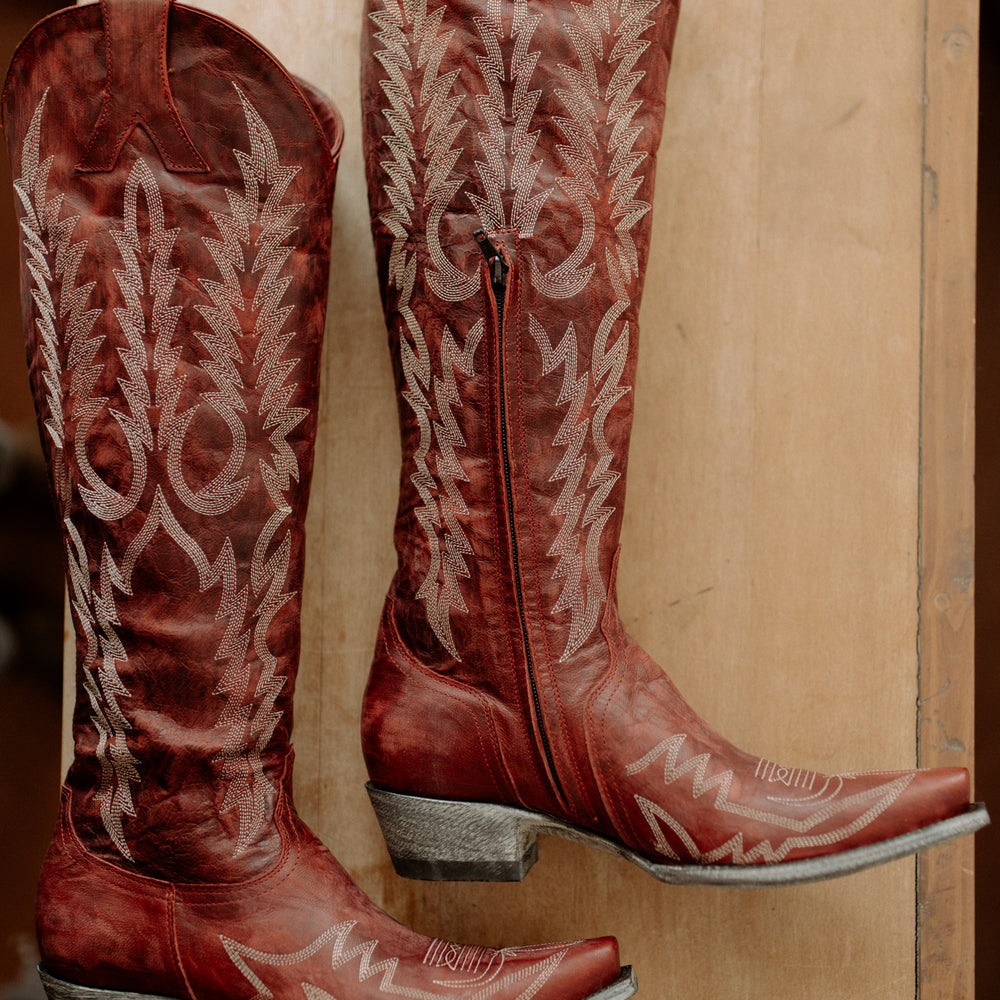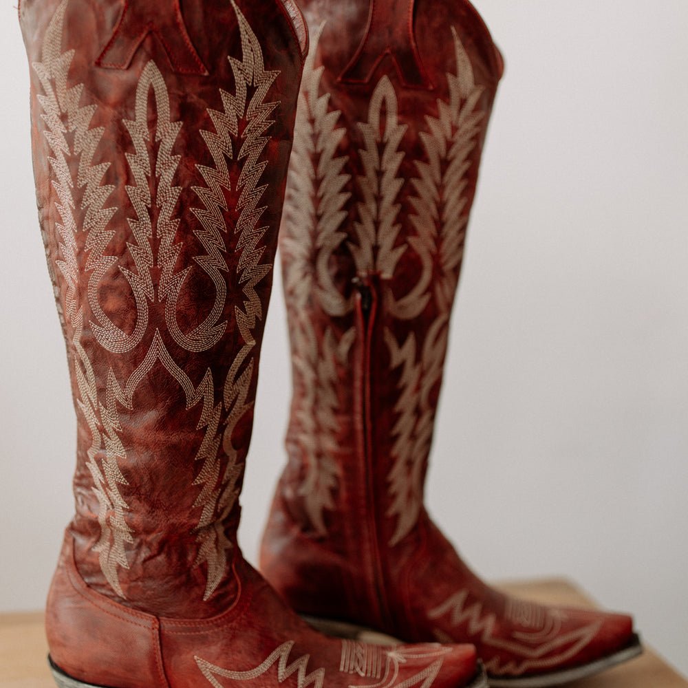 No collection would be complete without the Old Gringo 18in Mayra Bis. This tall embroidered western classic is your statement piece. A must-have in your closet. And now available in Red.
