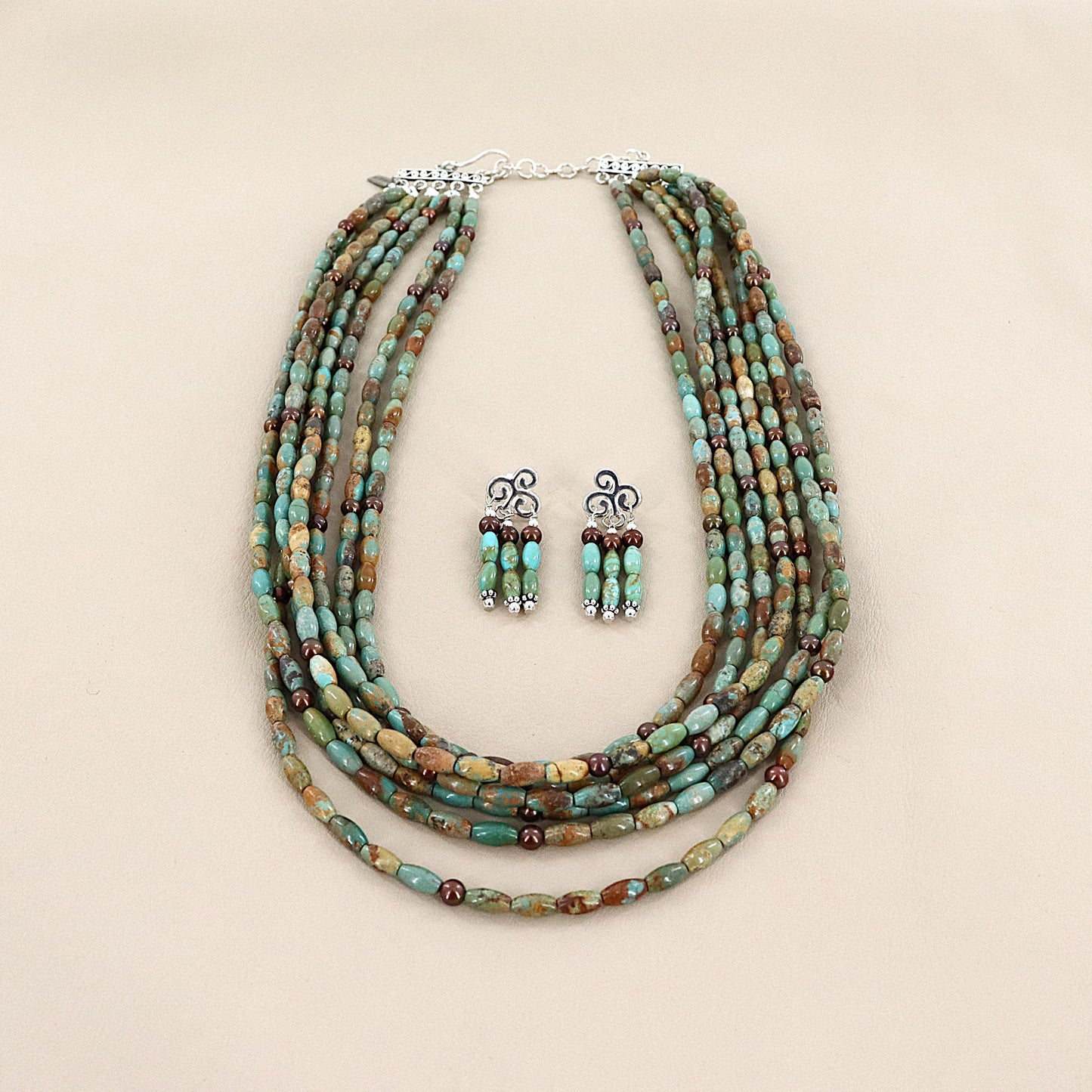PAIGE WALLACE 7 Strands Green Turquoise Tubes With Small Brown Rice Pearls Necklace