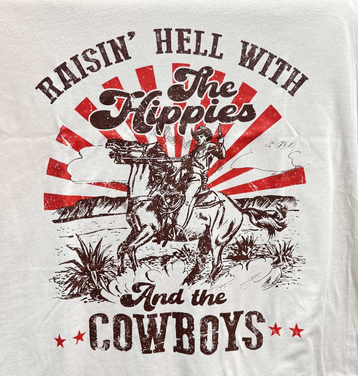 Unleash your wild side with our Raisin' Hell Western Tee. This unique shirt is perfect for those who live life on their own terms and aren't afraid to stir things up. With its Western-inspired design and bold graphic, this tee is sure to make a statement wherever you go.