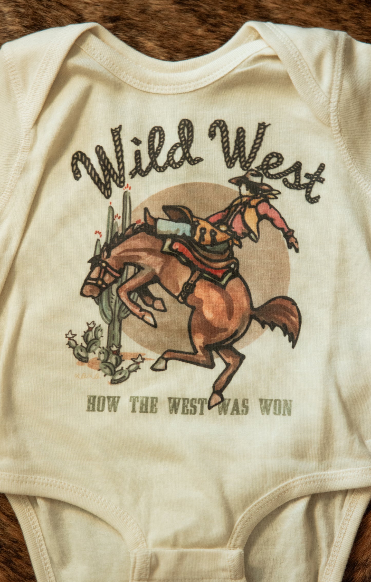 From XOXO, a small-batch, women-owned, western-loving, Texas-based wholesale apparel company. All of the art is drawn and then hand-painted in Texas and you'll want to collect every piece for your baby.